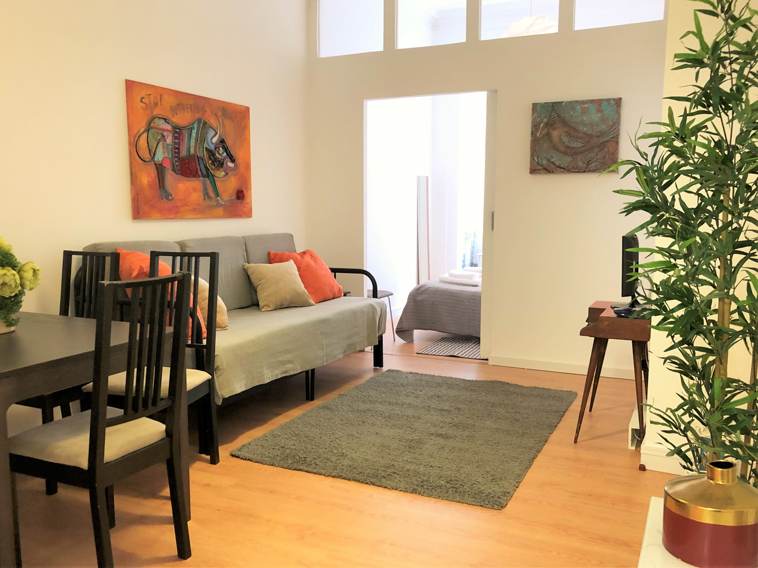 Este é um espaçoso apartamento no primeiro andar de um encantador edifício do século XVIII (sem elevador), com ar condicionado.