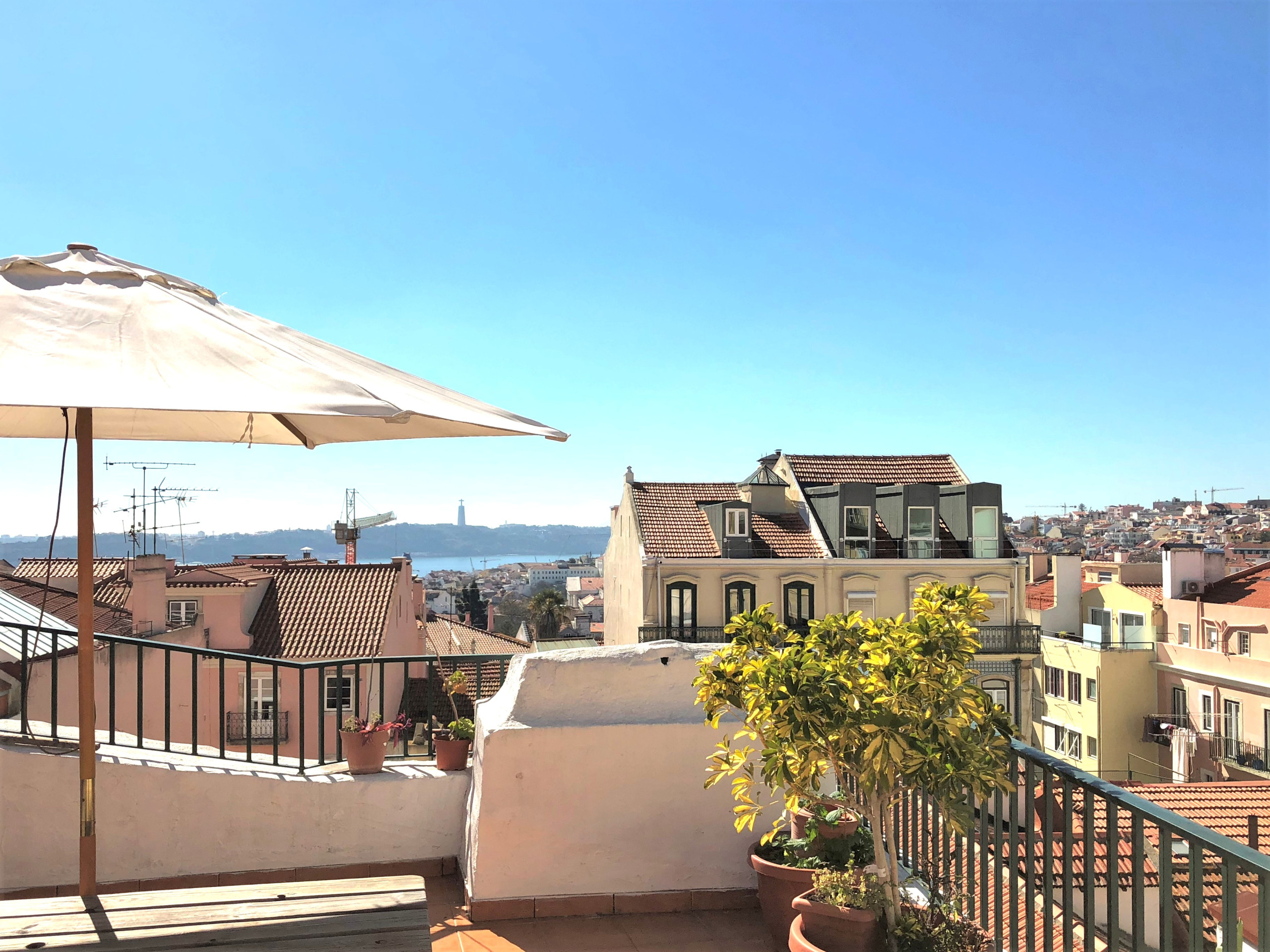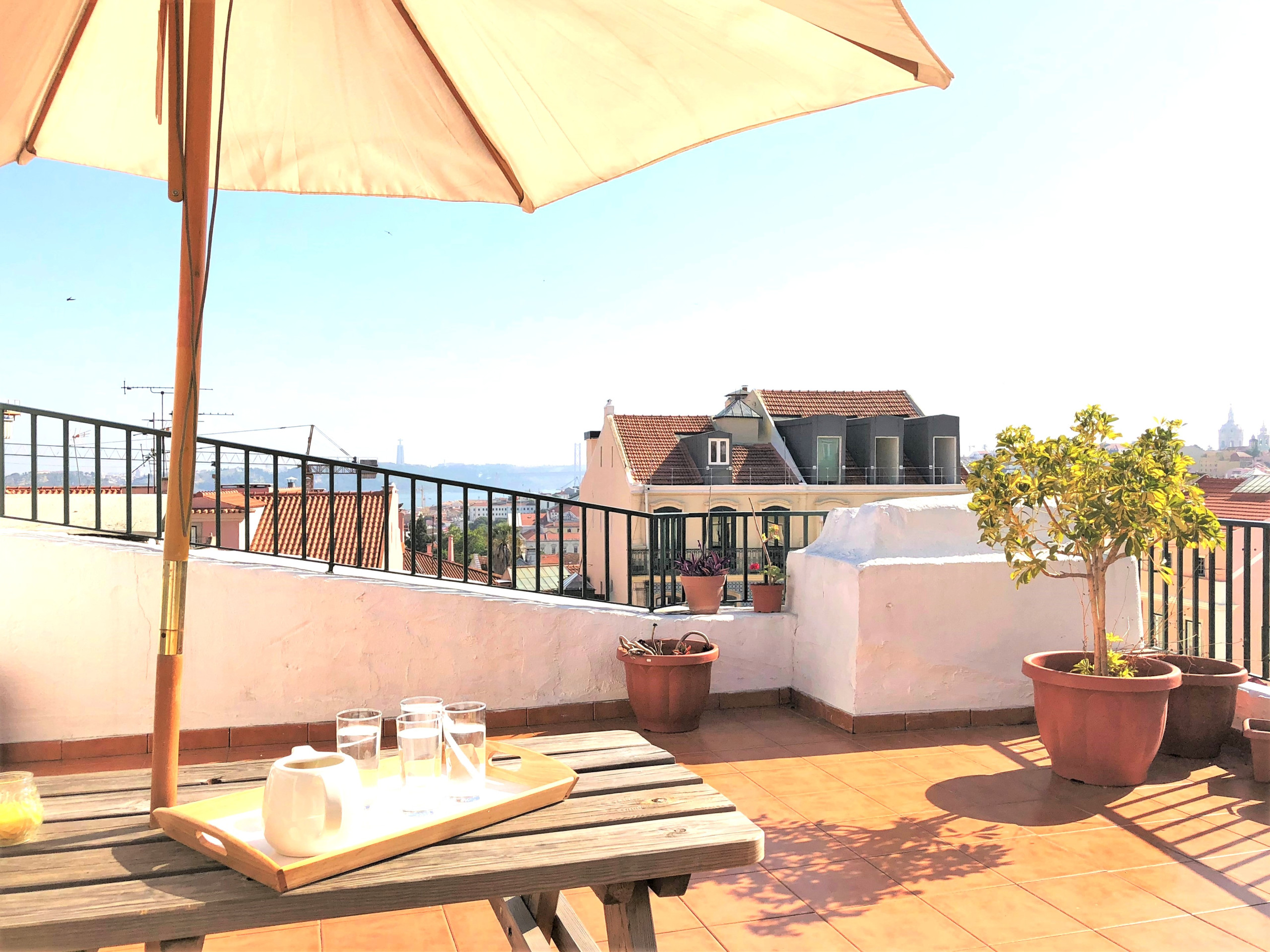 ☀️ Terraço- Aproveite e relaxe no nosso espaçoso terraço! Com uma vista incrível sobre a cidade de Lisboa! Aqui, pode relaxar e apanhar uns banhos de sol!