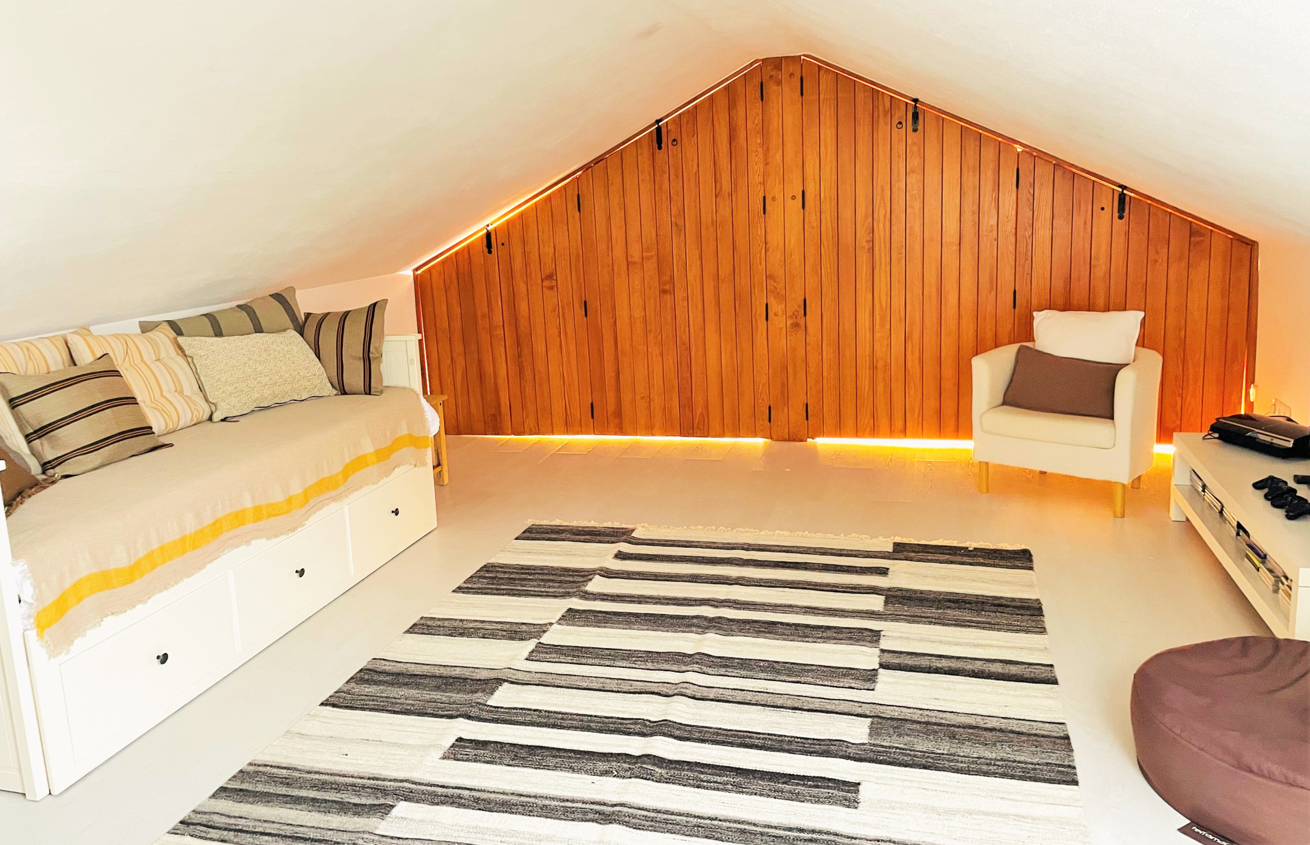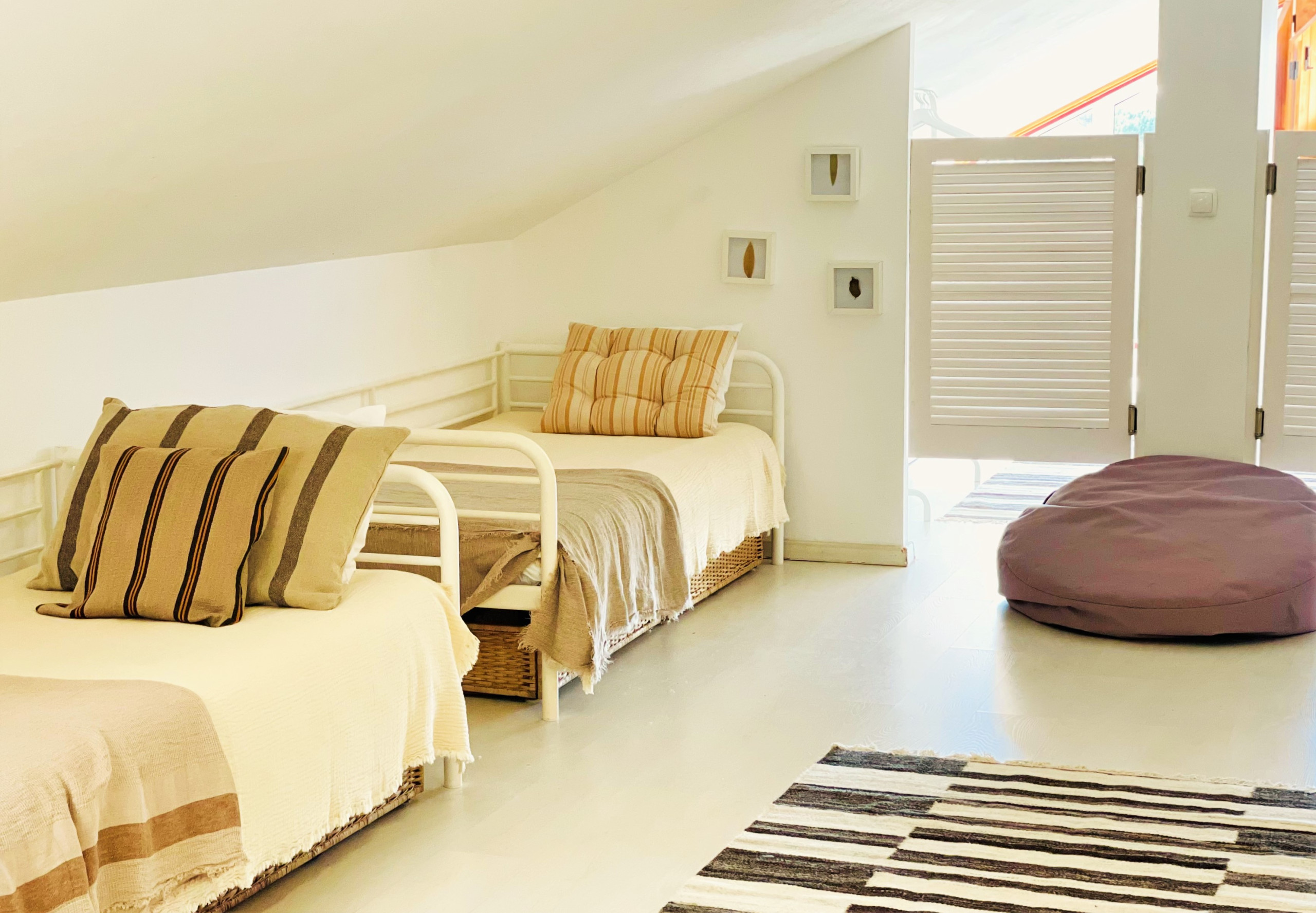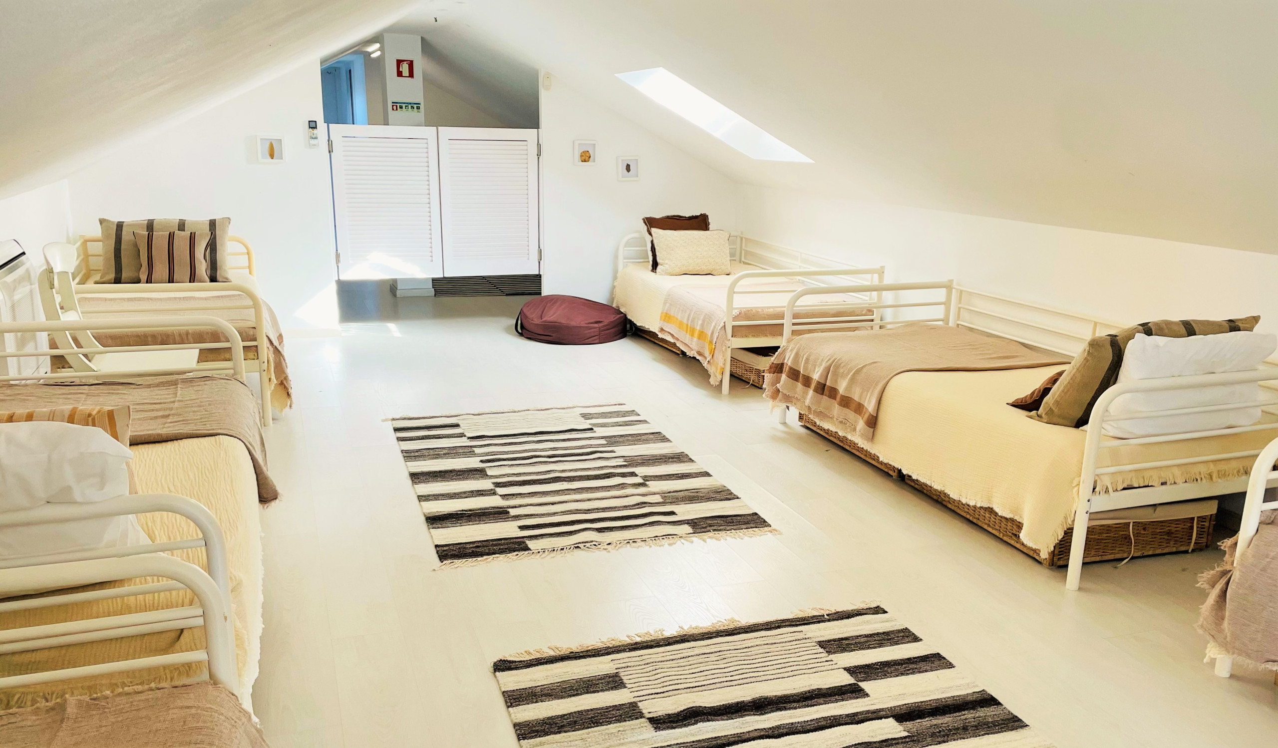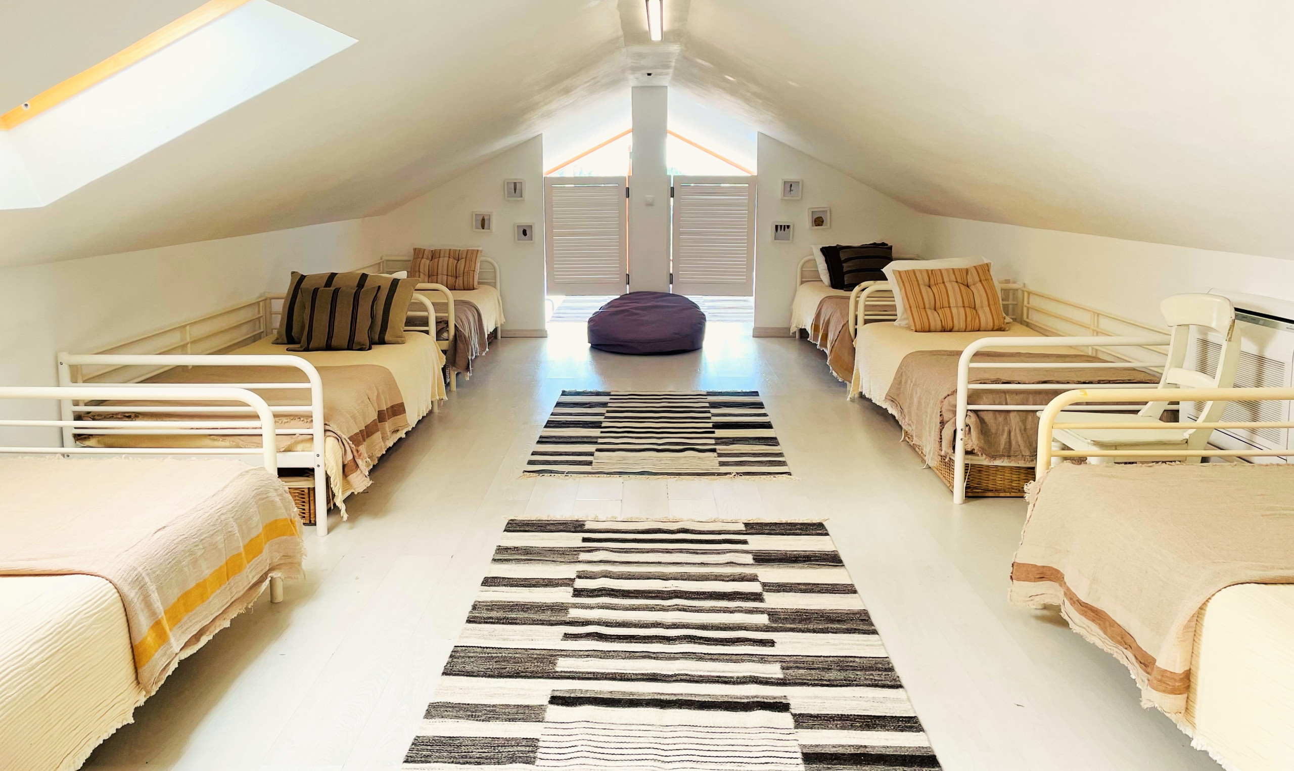 -Quarto espaçoso no sótão – Seis camas individuais + dois sofás-cama.