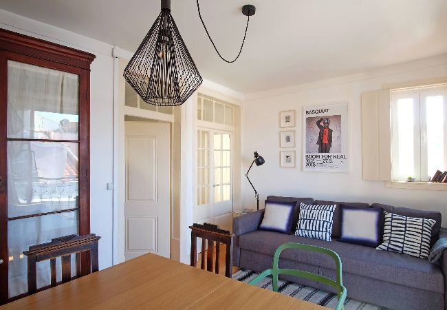 🛋️ Living Room – Bright and comfortable! The balcony overlooks the charming old street, where you can watch the famous Tram 28 pass by — a truly Lisbon experience.