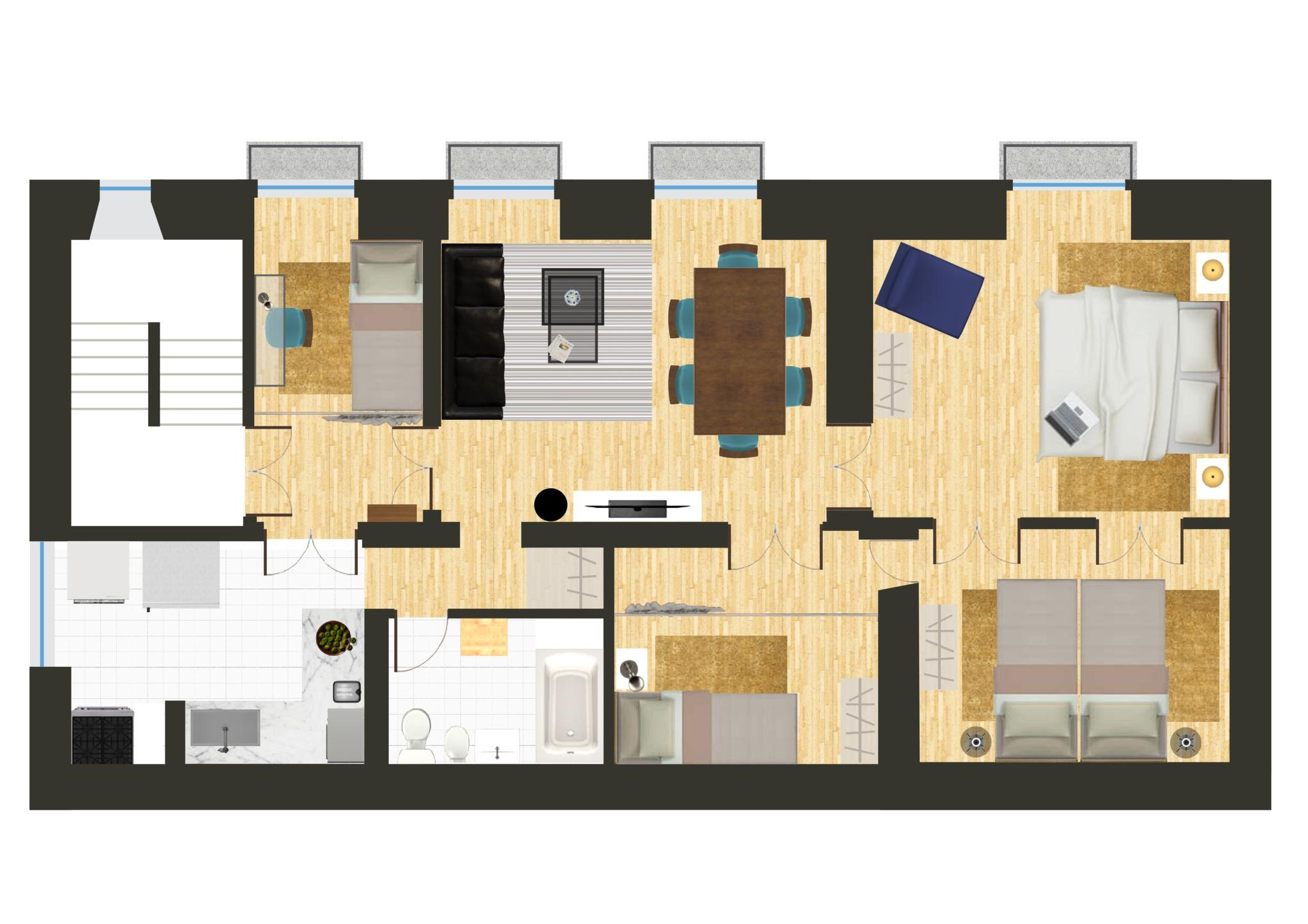 🛏️ Bedrooms - The apartment has 4 bedrooms. However, we kindly inform our guests about their layout! 😊