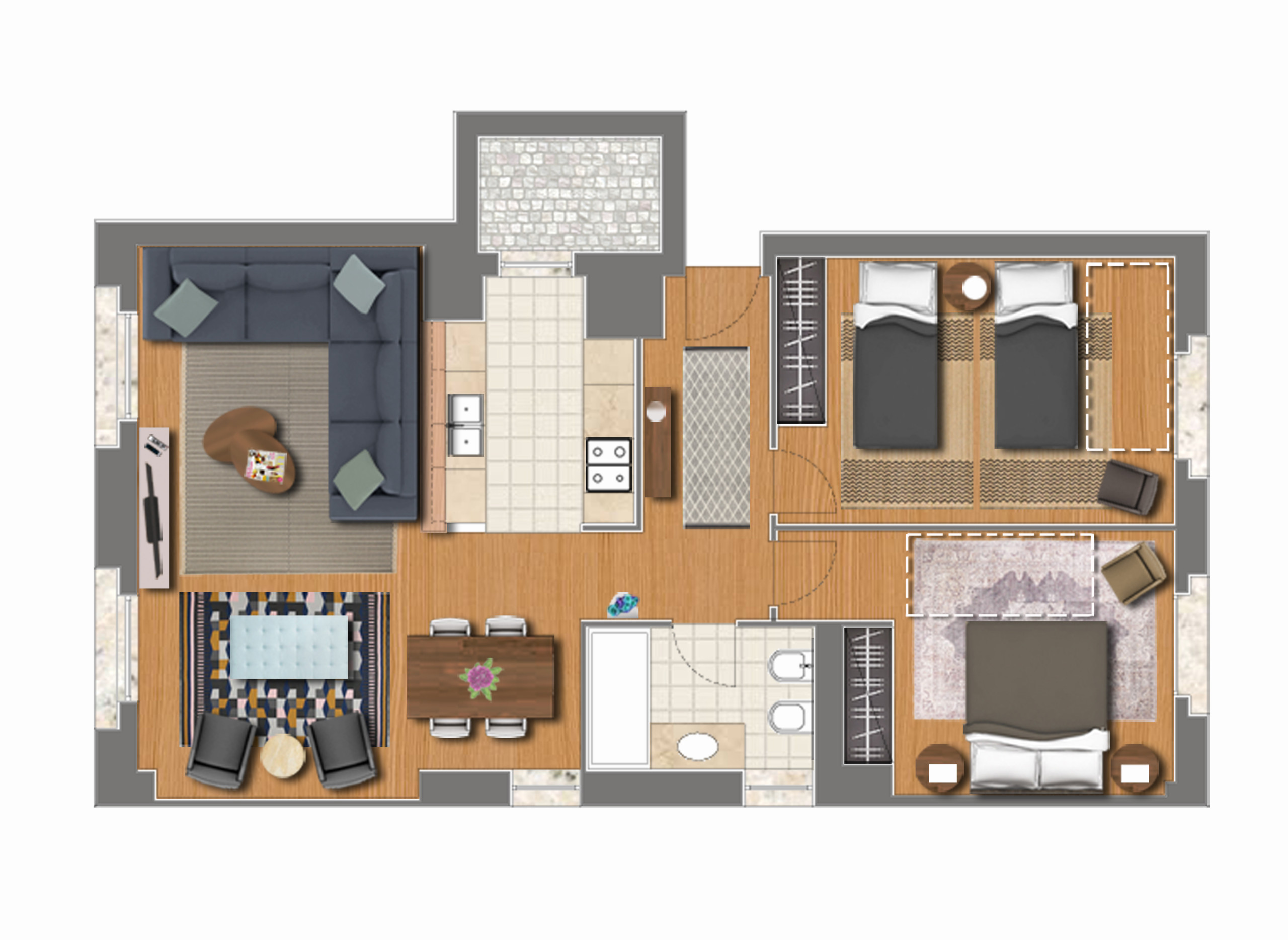 - 2 Bedrooms 2