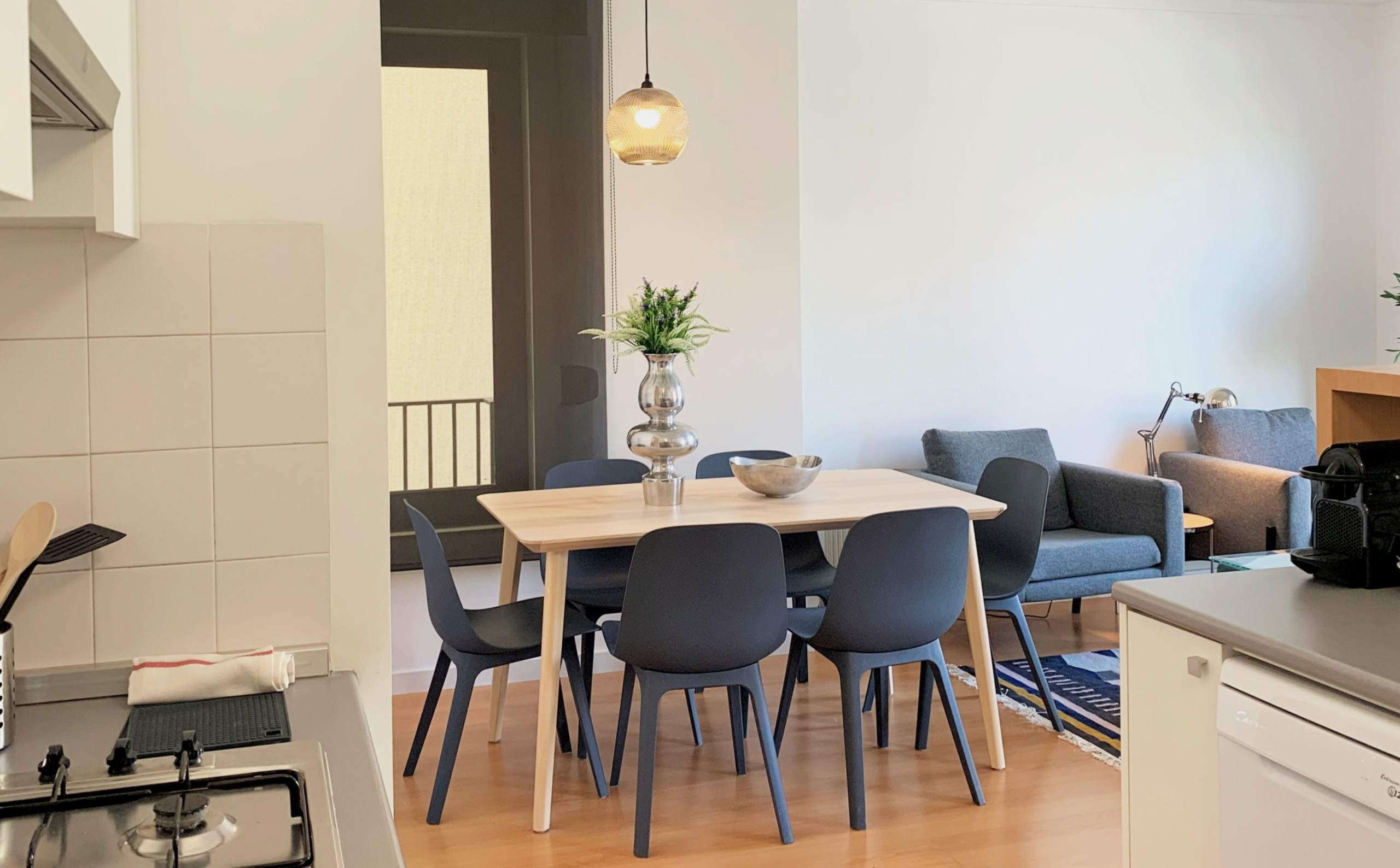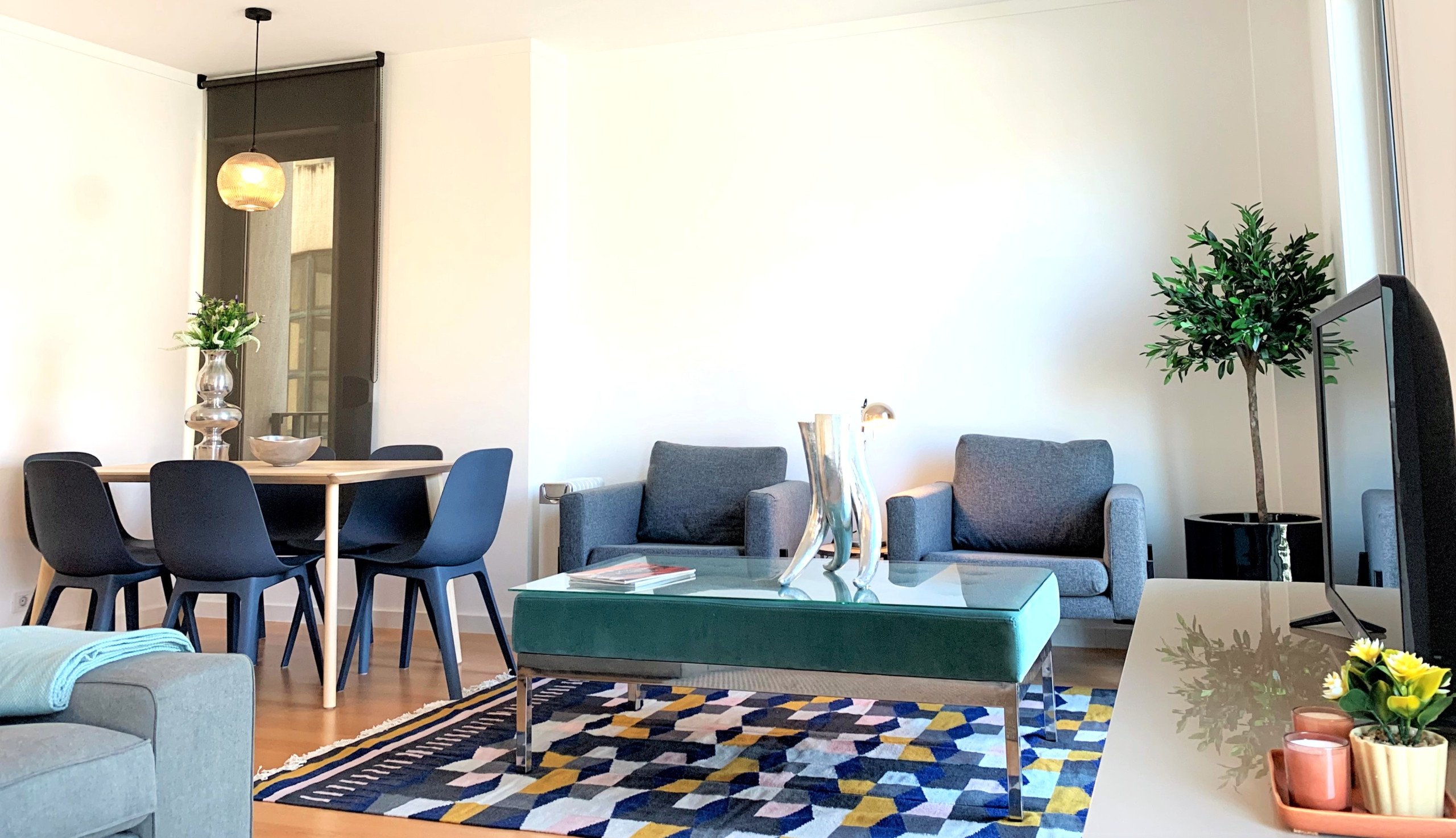 This modern 2-bedroom apartment is perfectly situated in the Baixa district, right in the heart of Lisbon. It’s one of the best places to stay when visiting the city, allowing you to explore the entire historic center on foot. You’ll love staying in one of Lisbon’s most iconic neighborhoods, with everything you need just steps away.