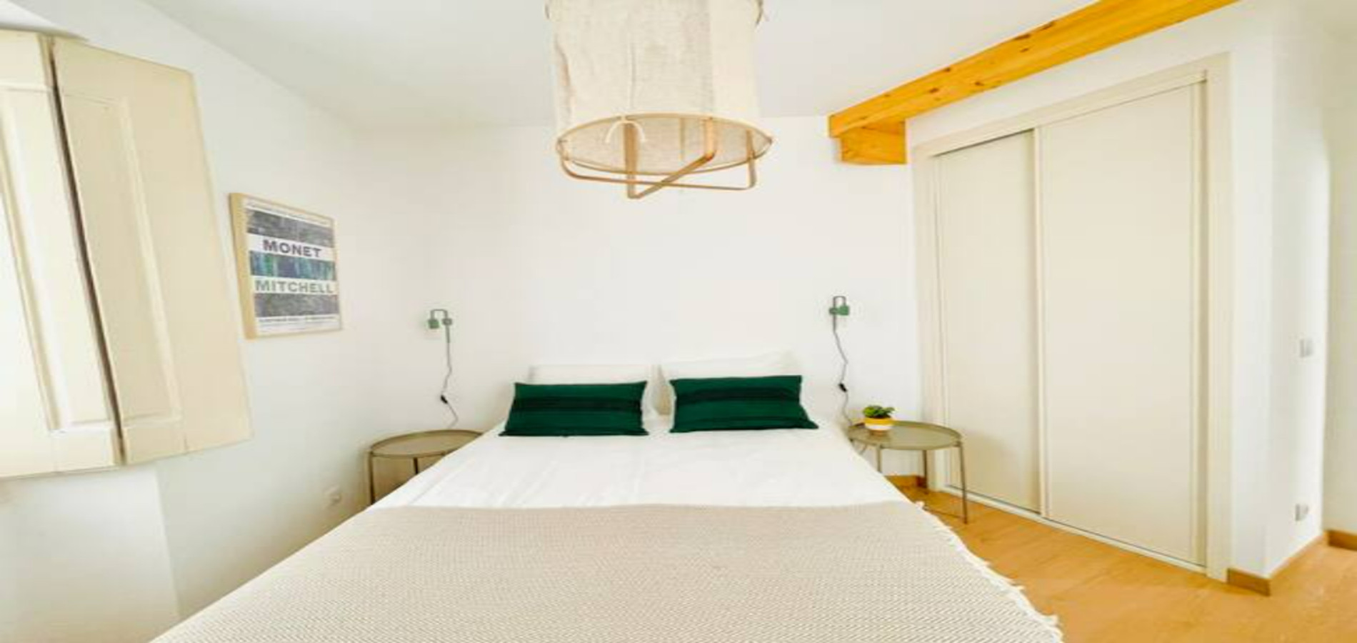 Apartment renovated in 2022, with approximately 30 m², featuring a living room, a bedroom, a fully equipped kitchen, and a bathroom. It has A/C!