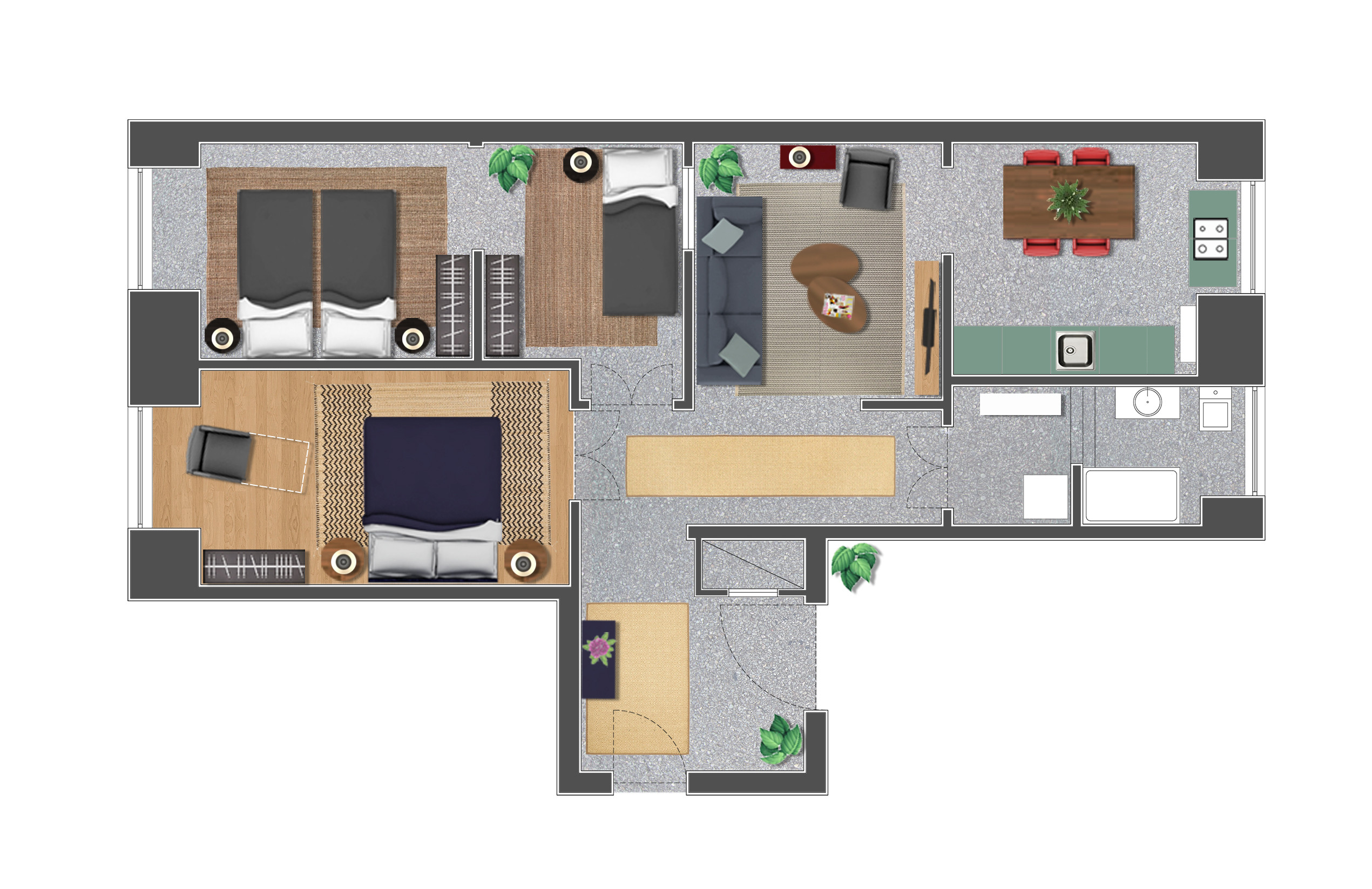 -Bedroom 2: Two single beds (90x200cm)